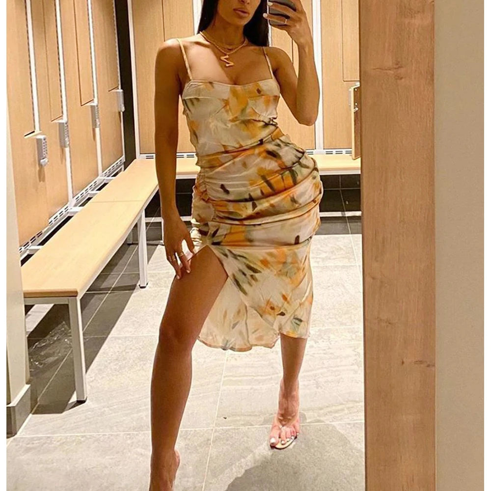 Expertly crafted by Fern and Oak, the Blue Ruched Sling Dress is a sleek and stylish addition to any wardrobe. The ruched fabric on the side offers a flattering silhouette, while the high side slit adds a touch of femininity. Spaghetti straps provide a delicate finish to this timeless piece.