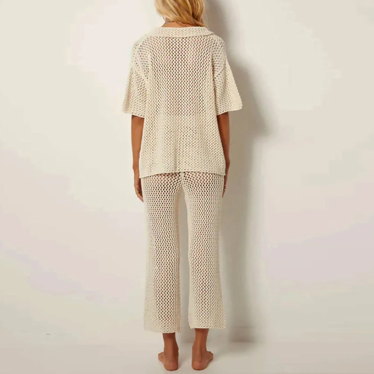 Crocheted Wide Leg Pants Set - Fern and Oak