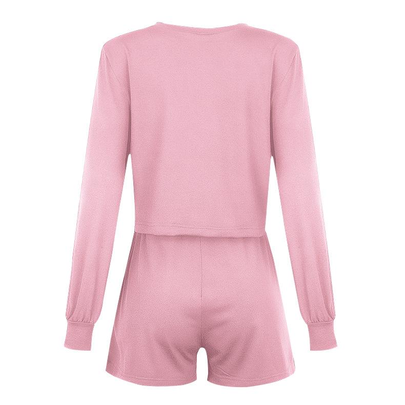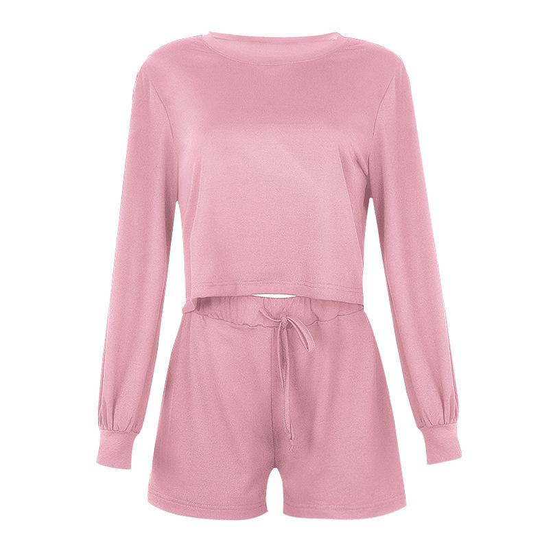 Add to you casual wardrobe with our Cropped Long Sleeve Shirt and Biker Shorts Set at Fern and Oak. Featuring a comfortable and loose-fitting cropped long sleeve shirt with cuffed sleeves and biker style shorts. Made with a mix of spandex and polyester, this set is perfect for the stylish and active individual. Easy to put on with a pullover design and elastic waistband. Elevate your streetwear style with this solid colored set.
