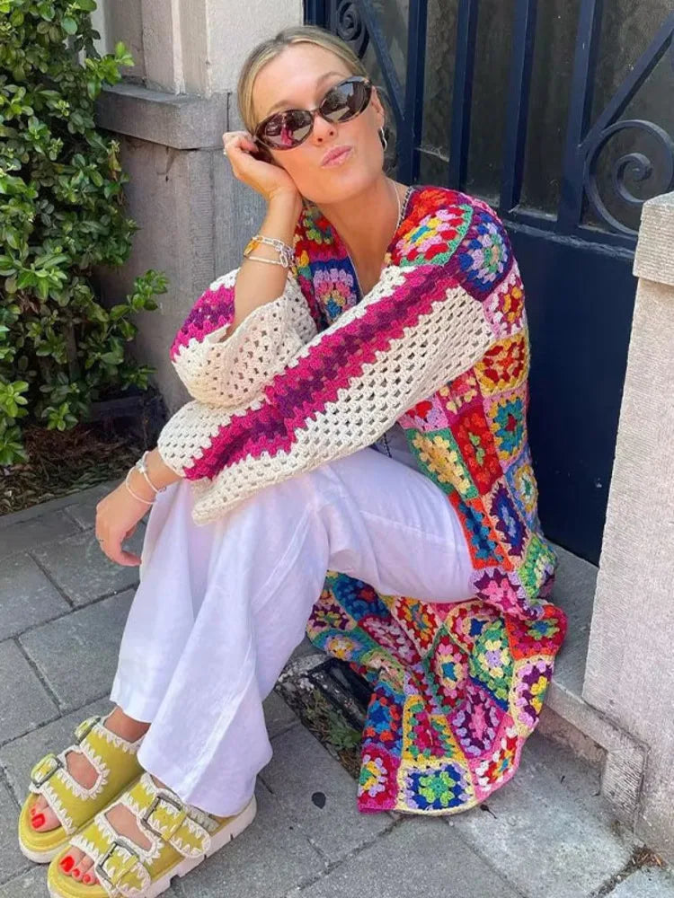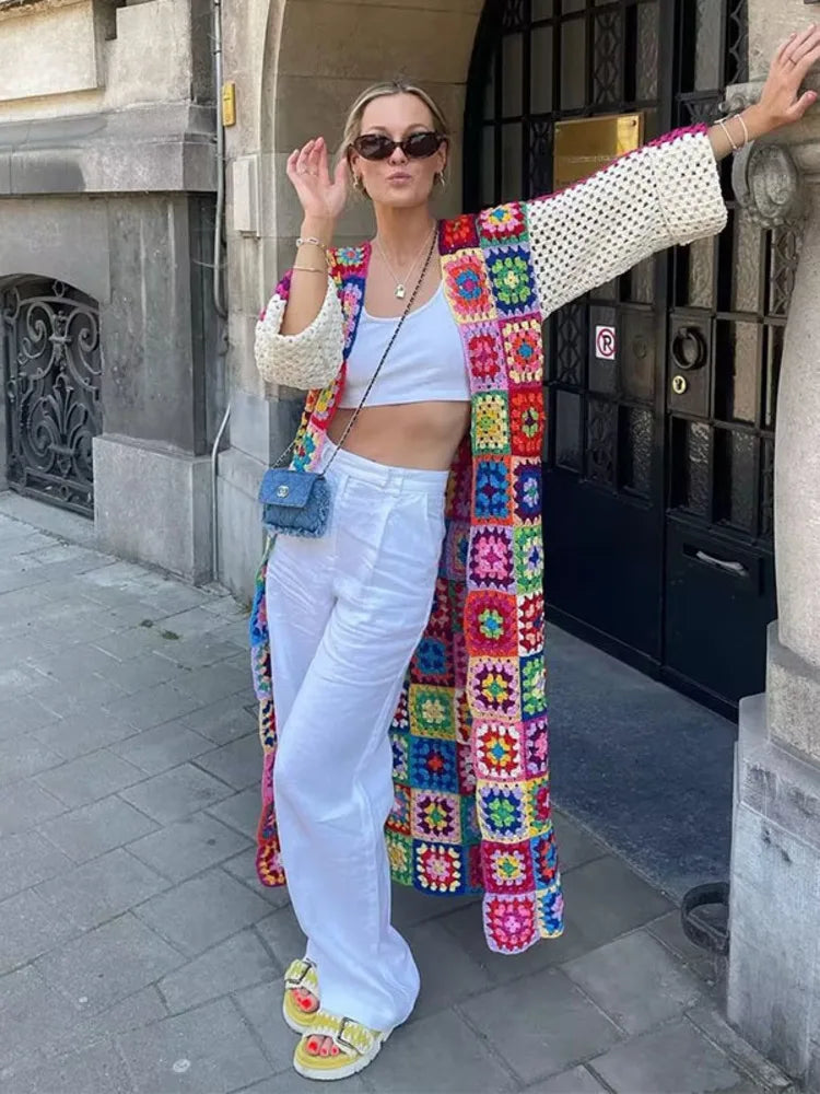 Unlock a new vibe with our Grandmother's Blanket Crocheted Coat. From our crochet couture collection, this piece combines nostalgia with modern style. The cardigan design offers both comfort and warmth, perfect for any occasion. Add a touch of grandma's love to your wardrobe.