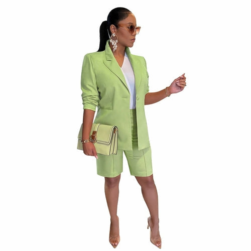 Green Women's Casual Suit Set with Blazer and Shorts - Fern and Oak